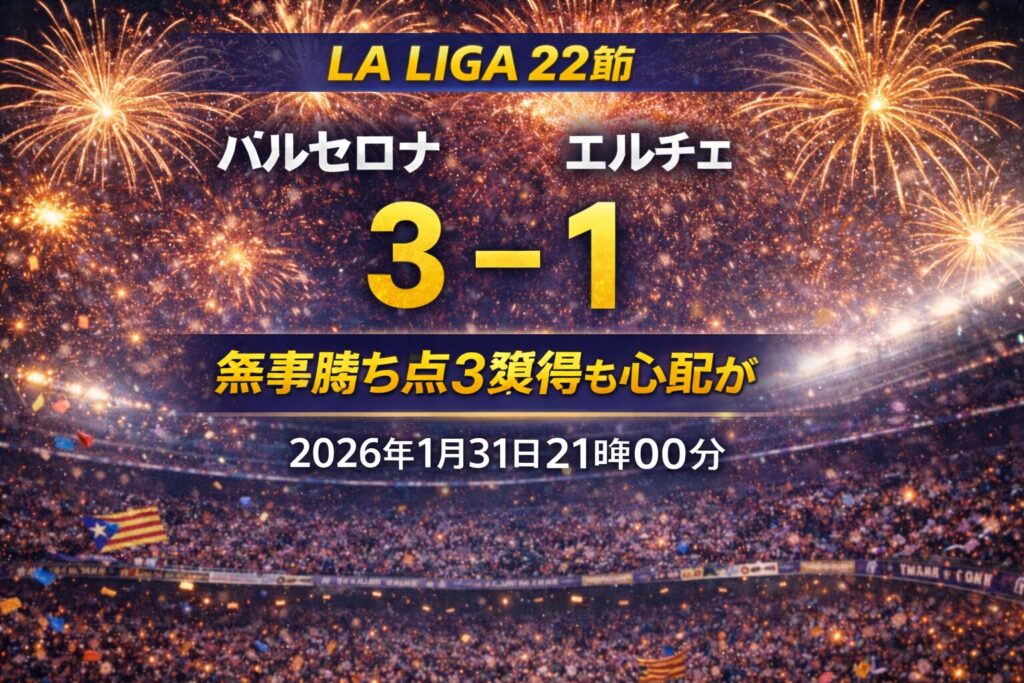 【試合レビュー】ラ・リーガ第22節| vs エルチェ:先制し勝利し勝ち点3で首位堅守