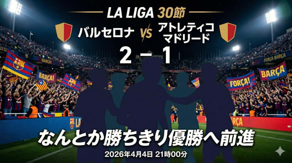 最新:【試合レビュー】ラ・リーガ第30節| vs アトレティコ マドリード:苦戦も勝利、優勝へ前進。アトレティコ三連戦の初戦を制す