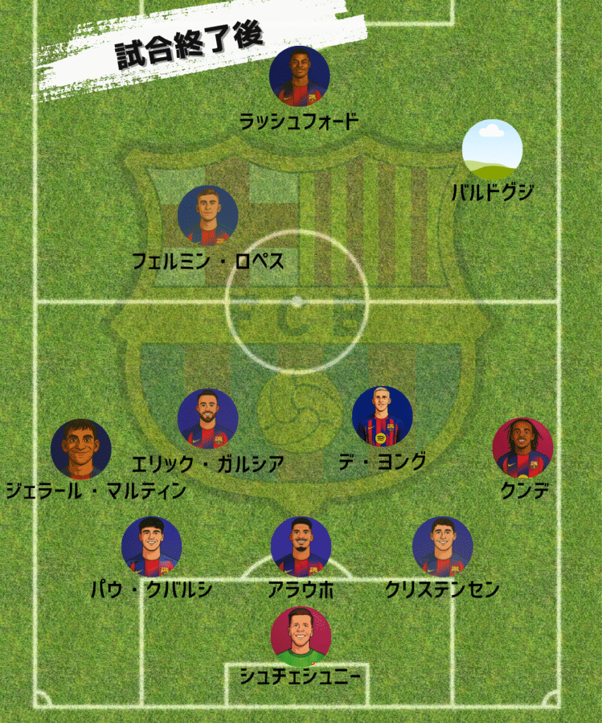 63分にはヤマルとペドリを下げ、クリステンセンとバルドグジを投入。過密日程を見据えた早めの交代策に踏み切る。