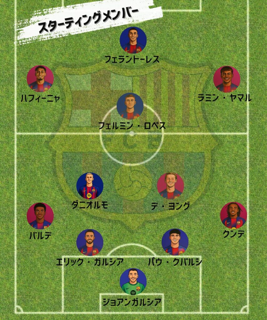 欠場者はガビ、ペドリ、クリステンセンの3名でコンディション面でも安定した状況で試合に臨んだ。