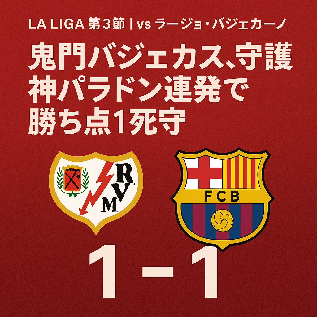 ラ・リーガ第3節、鬼門バジェカスでのラージョ戦は、やはり厳しい展開となった。前半はヤマルが獲得したPKを自ら決めて先制するも、全体的にはラージョの勢いに押される時間が長く、追加点のチャンスを逃したことが後半への不安を残した。