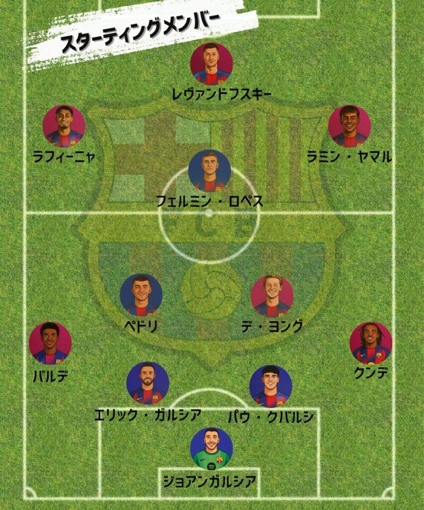 移動を含めると十分な休養がないためしっかりローテーションを組みながら勝ち切りたい試合ですね。特に最終ラインのクバルシとエリックガルシアとバルデ、中盤のペドリとフレンキーは最重要な選手なだけになかなか休めないのは分かるがこういうタイミングで調整をしてほしい。